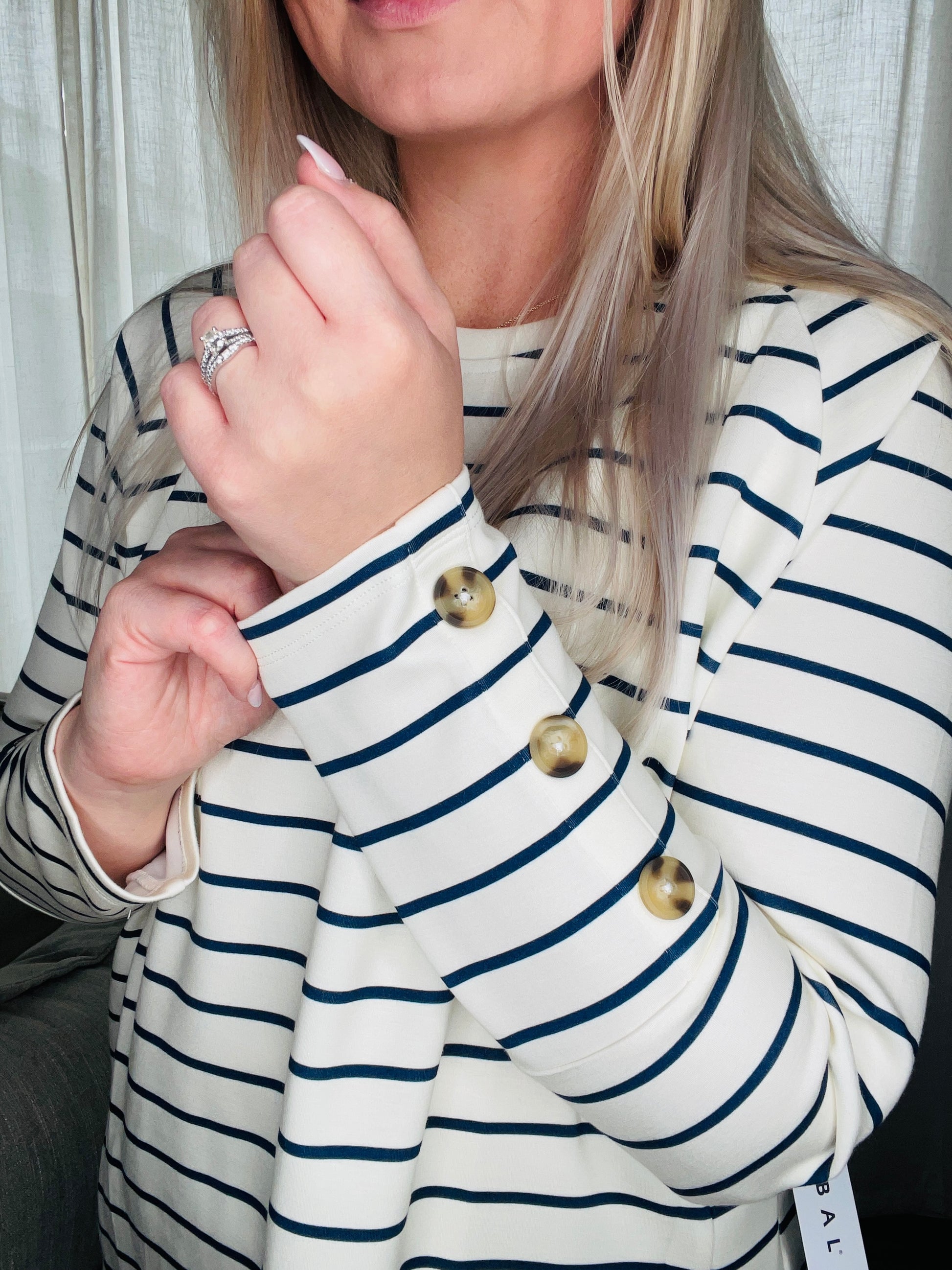 TRIBAL: L/S CREW NECK TOP W BUTTONS