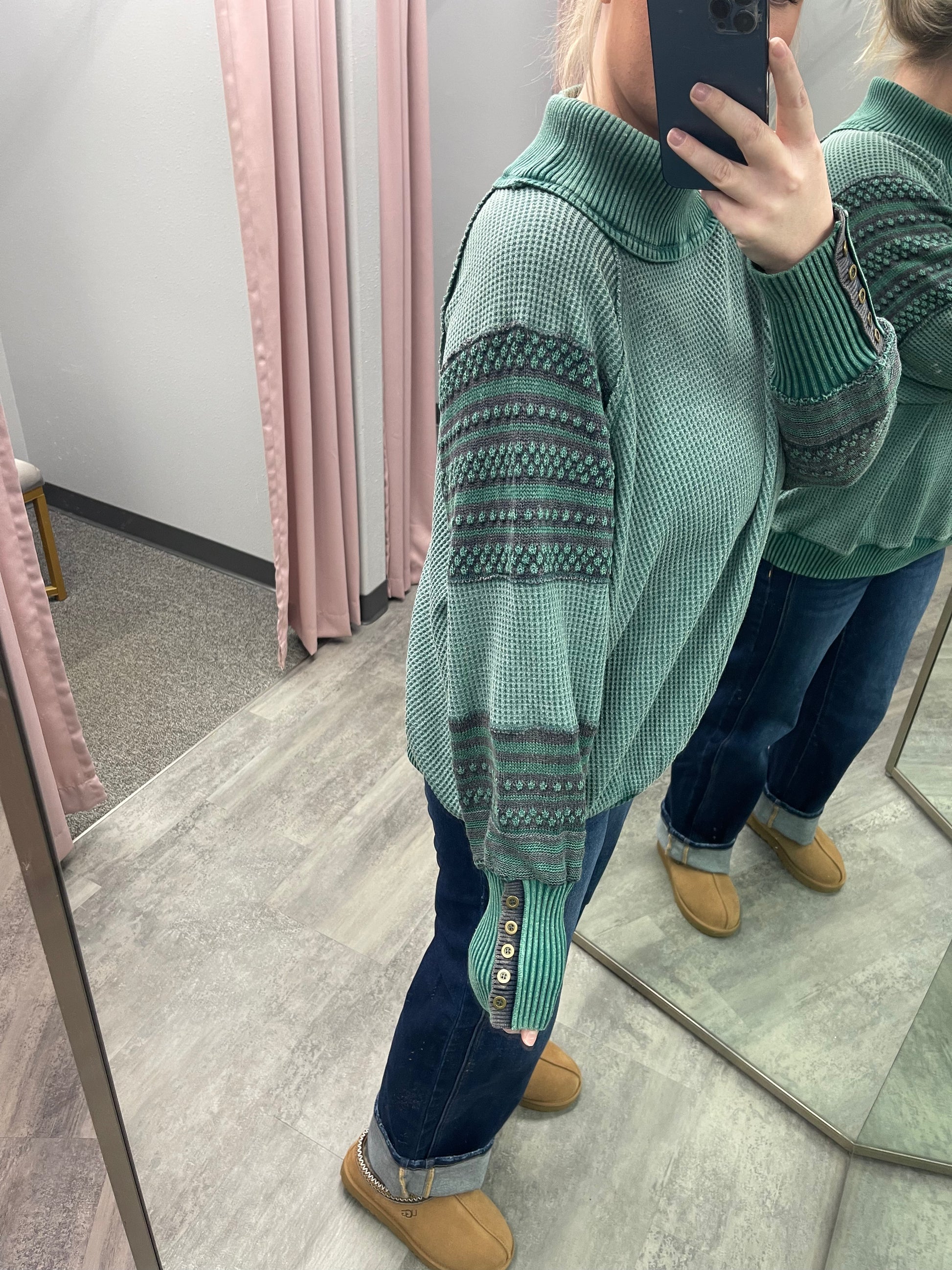 WASHED THERMAL MOCK NECK LONG SLEEVE TOP: GREEN